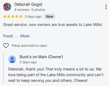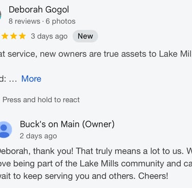 Located in the heart of downtown Lake Mills, our spot is where friends come together. Whether it’s cheering on a win, unwinding after a day outdoors, or simply stopping by to hang out, you’ll always feel at home.